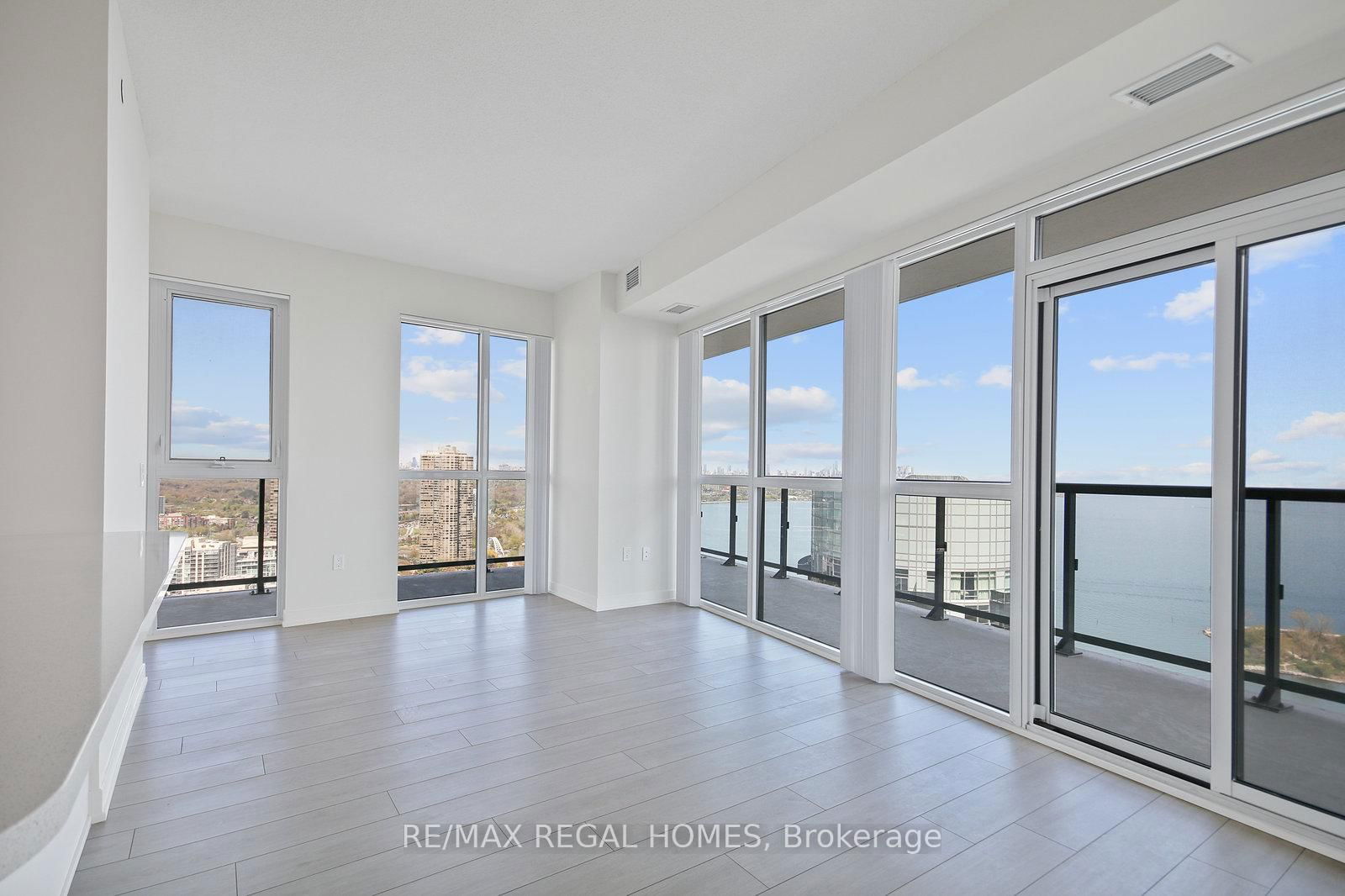 Waterfront living at its finest. This Brand New South East Corner Suite contains a full wrap around S/E facing balcony and has breathtaking unobstructed views of both downtown Toronto and Lake Ontario! Boasting ample natural light from Floor to Ceiling Windows in this spacious split 2bdrm + den and 2 Full Bathrooms. Primary Bedroom Features a Walk in Closet, 4pc Ensuite and Walkout to Balcony. Some of the amenities: Fitness Centre, Indoor Swimming Pool, Cold Plunge Pool, Sauna, Party Room, Outdoor Terrace with BBQ's, Guest Suites as well as 24 Hour Concierge/Security Service. Steps to Scenic Trails, Lakeside Parks, Charming Cafes, Plenty of Dining Options & TTC. Includes one parking spot and one Locker.